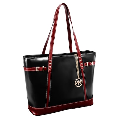 McKlein M Series Serafina Genuine Leather Tote Bag, Black/Red (97565)
