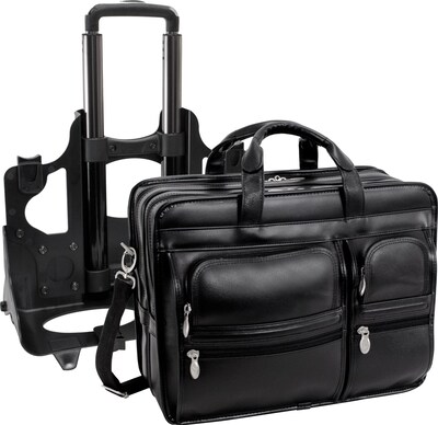 McKlein P Series Laptop Rolling Briefcase, Black Leather (88445)