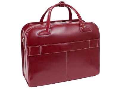 McKlein Roseville Leather Briefcase, Laptop Compatible, Rolling, TSA Checkpoint Friendly, Brown (96644)