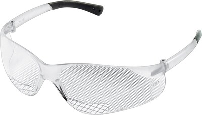 MCR Safety® BearKat® Crews ANSI Z87 Magnifier protective glasses in clear color feature single wrap-around lens with built in magnifier, non-slip rubber head grips and 1.5 diopter strength for comfortable use.