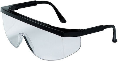 MCR Safety® Tomahawk® TK110 Protective Eyewear features clear lens with a black frame and adjustable spatula temples for a secured fit.