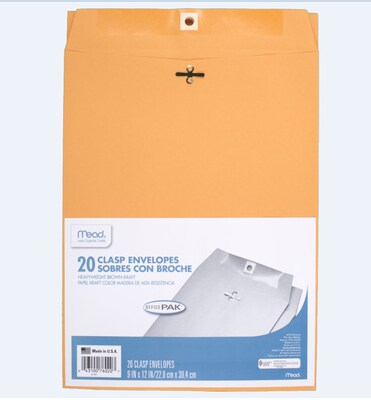 Mead Clasp Envelopes, 9" x 12", Brown Kraft, Office Pack, 20 Count (76020)