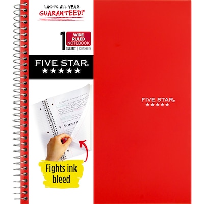 Five Star 1 Subject Notebooks are wide ruled, ideal for class notes and projects.