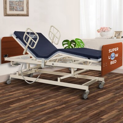 Medacure Super Low Fully Electrical Adjustable Bariatric Hospital Bed, 8 Function Hi/Lo Hand Pendant, Cherry (MC-SLB42CH)