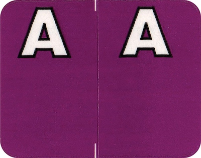 Self-adhesive label is scored for easy folding and application. Protected by clear laminate for durability. Features “Time to Reorder” reminder before end of roll. 750 purple "A" labels per roll in self-dispensing box. Size: 1-1/4 x 1 (before folding).