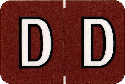 Color-coded alpha labels to match Colwell Jewel Tone Systems. Clear laminate protects labels and prevents smudging and cracking. Scored with self-adhesive backing. Alpha D; brown color. 126 labels per pack of 14 sheets. Label size: 1-1/2" x 1".