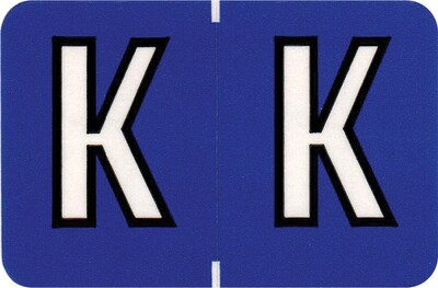 Color-coded alpha labels to match Colwell Jewel Tone Systems. Clear laminate protects labels and prevents smudging and cracking. Scored with self-adhesive backing. Alpha K; royal color. 126 labels per pack of 14 sheets. Label size: 1-1/2" x 1".