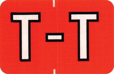 Color-coded alpha labels to match Colwell Jewel Tone Systems. Clear laminate protects labels and prevents smudging and cracking. Scored with self-adhesive backing. Alpha T; salmon color. 126 labels per pack of 14 sheets. Label size: 1-1/2" x 1".