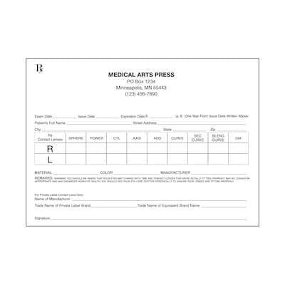 Medical Arts Press® Contact Lens Rx Blanks; 2-Part