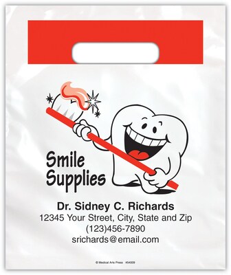 Medical Arts Press® Dental Personalized 2-Color Supply Bags; 7-1/2x9", Tooth w/Brush, Smile Supplies, 100 Bags, (54009)