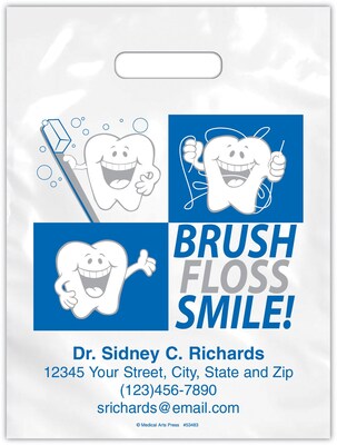 Medical Arts Press® Dental Personalized 2-Color Supply Bags; 9 x 13", Brush/Floss/Smile!, 100 Bags, (53483)