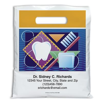 Medical Arts Press® Dental Personalized Full-Color Bags; 7-1/2x9", Tooth/Floss, 100 Bags, (54012)