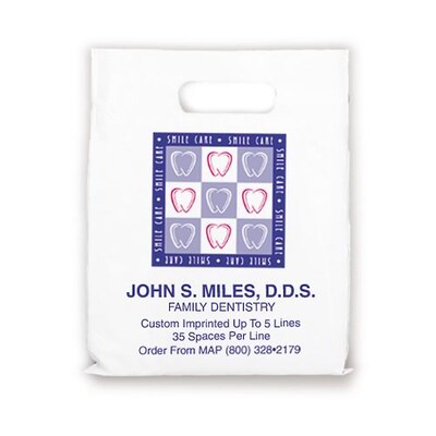 Medical Arts Press® Dental Personalized Large 2-Color Supply Bags; 9 x 13", Smile Care Border, 100 Bags, (656131)