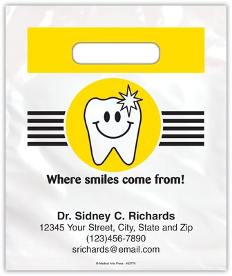 Medical Arts Press® Dental Personalized Small 2-Color Supply Bags; 7-1/2x9", Where Smiles Come From, 100 Bags, (53770)