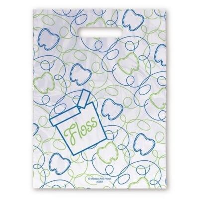 Medical Arts Press® Dental Scatter Print Bags, 7 1/2" x 10", Blue & Green Floss, 100 Bags (30289)
