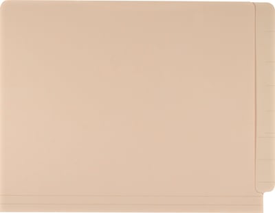 Single-ply end-tab folders are made of 11 pt. manila stock. They're scored for 3/4" expansion and feature embossed score lines on tabs for accurate label placement. Size: 12-1/4"W x 9-1/2"H overall, 11-3/4"W body. 100 per box.