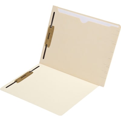 Full-length pocket on back opens at top for quick access. Closed on 3 sides to hold contents in place. Thumbcut for easy access. Two preinstalled fasteners. 11-pt. stock. Reinforced end tabs. Embossed score lines for labels. 250 per box. Size: 12-1/4W x 9-1/2H.