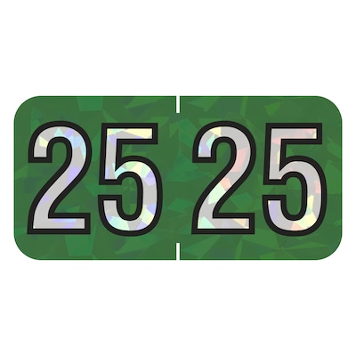 Medical Arts Press Holographic End-Tab Year Labels, 2025, Green, 500/Roll (0725HGN)