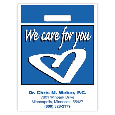 Medical Arts Press® Medical Personalized 2-Color Bags; 9 x 13", We Care for You/Blue Heart, 100 Bags, (53175)