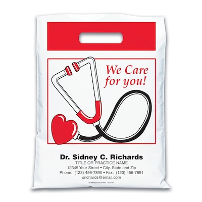 Medical Arts Press® Medical Personalized 2-Color Bags; 9 x 13", We Care for You/Heart Stethoscope, 100 Bags, (53709)