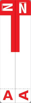 Combine patient's name and color-coding on one label. Each label is printed with 2 letters, just strip away the letter not used. Designed to match Smead® Alpha-Z® name labels. 100 Red "A & N" labels per pack. Size: 3-5/8" x 1-1/8" before folding.