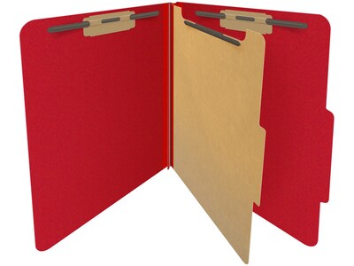 - Made of 25 pt. deep red pressboard with one 17 pt. kraft divider