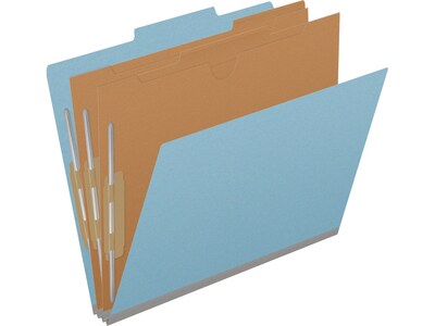 - Made of 25 pt. blue pressboard with two 11 pt. kraft divider pockets and a gray Tyvek gusset