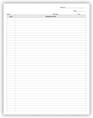 Ruled with date column and plenty of room for progress notes.
