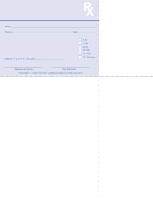 We apologize for the inconvenience. This is a state-regulated Rx blank and can only be processed by a Quill representative. E-mail, fax or mail orders are accepted.