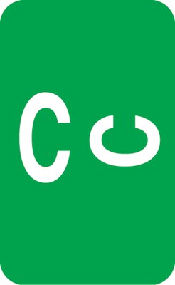 - 250 Dark Green "C" labels per roll in a self-dispensing box
