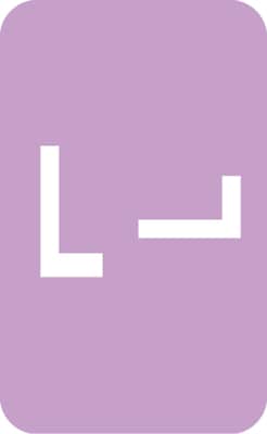 Compatible with Smead® Alpha-Z® labels - same design, same color - but you pay less! Labels are scored and self-adhesive with clear laminate finish. 250 Lavender "L" labels per roll in a self-dispensing box. Size: 1"W x 1-5/8"H before folding.