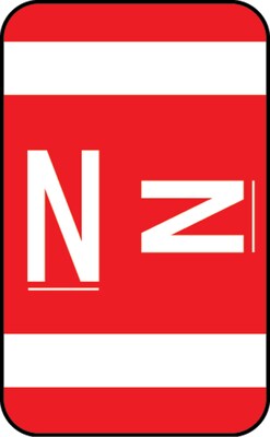 Compatible with Smead® Alpha-Z® labels - same design, same color - but you pay less! Labels are scored and self-adhesive with clear laminate finish. 250 Red "N" labels per roll in a self-dispensing box. Size: 1"W x 1-5/8"H before folding.