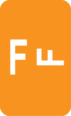- 100 Orange "F" labels per package (10 sheets of 10 labels each)