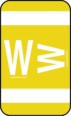 Compatible with Smead® Alpha-Z® labels - same design, same color - but you pay less! Labels are scored and self-adhesive with clear laminate finish. 100 Yellow "W" labels per package (10 sheets of 10 labels each). Size: 1"W x 1-5/8"H before folding.