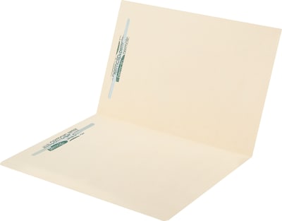 Durable 11 pt. manila folders have full cut double-thick top-tabs. Two 2" capacity preinstalled fasteners hold 2-hole punched paperwork. Scored for 3/4" expansion. 50 per box. Measures 11-3/4"W x 9-1/2"H overall; 9"H body.