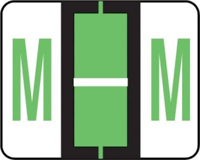 Compatible with TAB® Products labels - same design, same color - but you pay less! Labels are scored and self-adhesive with clear laminate finish. 500 Light Green "M" labels per roll in a self-dispensing box. Label size: 1-1/4"W x 1"H before folding.