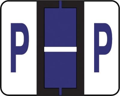 Compatible with TAB® Products labels - same design, same color - but you pay less! Labels are scored and self-adhesive with clear laminate finish. 500 Violet "P" labels per roll in a self-dispensing box. Label size: 1-1/4"W x 1"H before folding.