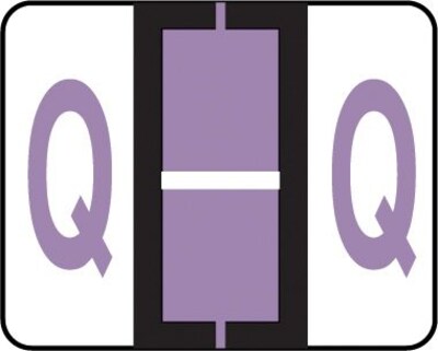 Compatible with TAB® Products labels - same design, same color - but you pay less! Labels are scored and self-adhesive with clear laminate finish. 500 Lavender "Q" labels per roll in a self-dispensing box. Label size: 1-1/4"W x 1"H before folding.