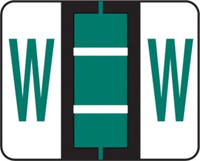 Compatible with TAB® Products labels - same design, same color - but you pay less! Labels are scored and self-adhesive with clear laminate finish. 500 Dark Green "W" labels per roll in a self-dispensing box. Label size: 1-1/4"W x 1"H before folding.