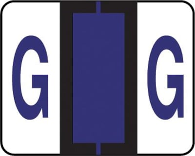 Compatible with TAB Products labels - same design, same color - but you pay less! Labels are scored and self-adhesive with clear laminate finish. 126 Violet "G" labels per pack (14 sheets, 9 labels each). Label size: 1-1/4"W x 1"H before folding.
