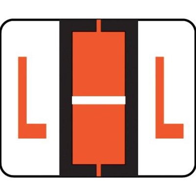 Compatible with TAB Products labels - same design, same color - but you pay less! Labels are scored and self-adhesive with clear laminate finish. 126 Dark Orange "L" labels per pack (14 sheets, 9 labels each). Label size: 1-1/4"W x 1"H before folding.