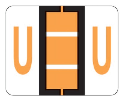 Compatible with TAB® Products labels - same design, same color - but you pay less! Labels are scored and self-adhesive with clear laminate finish. 126 Light Orange "U" labels per pack (14 sheets, 9 labels each). Label size: 1-1/4"W x 1"H before folding.