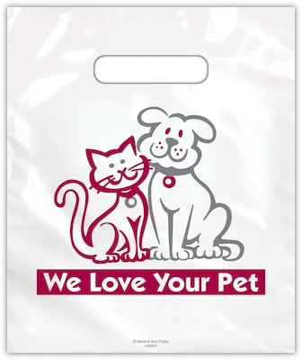 Medical Arts Press® Vet Non-Personalized 2-Color Small Supply Bags; 7-1/2x9", Cat/Dog, We Love Your Pet, 100 Bags, (36823)