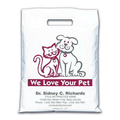 Medical Arts Press® Veterinary Personalized Large 2-Color Supply Bags; 9 x 13", Cat/Dog, We Love Your Pet, 100 Bags, (53278)