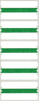 Two name labels in one. Dark Green bar with white label area wraps around tab so name and color are visible from both sides. Pressure-sensitive. Furnished 5 labels per sheet; 250 Dark Green labels per pack. Label size: 3-1/4" x 1-5/8" before folding.