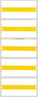 Two name labels in one. Yellow color bar with white label area wraps around tab so name and color are visible from both sides. Pressure-sensitive. Furnished 5 labels per sheet; 250 Yellow labels per pack. Label size: 3-1/4" x 1-5/8" before folding.