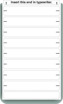 Handy 8-label sheets slide easily into your typewriter or can be handwritten. Pressure-sensitive for easy application. Each box contains 248 labels in White. Label size: 3-1/2" x 10/16".