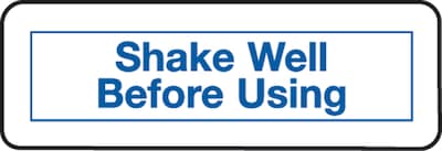 - White "Shake Well Before Using" ensures information is clearly communicated