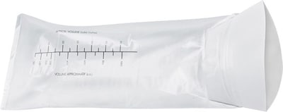 Emesis bags tie bag off at the ring to reduce contamination and smell, graduated markings to measure oz and cc/mL, Single use.