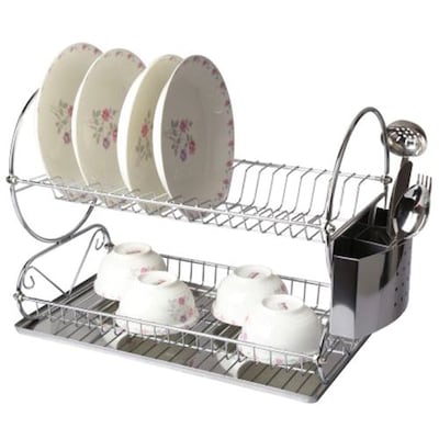 Mega Chef 15 1/2" Stainless Iron Shelf Dish Rack, Chrome Plated (94396414M)